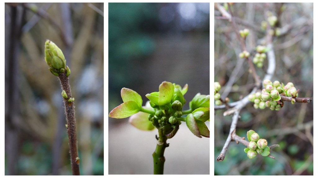 Hier en daar ontdek ik knoppen aan bloemen en struiken die helemaal klaar zijn voor het nieuwe leven. Dus ook al zien wij maar kale takken, binnenin is er nieuwe energie klaar om te creëren en te stromen, om de groeien en te bloeien. Zo kondigt het nieuwe leven zich aan. Een positieve stroom aan nieuwe energie. Sommige bloemen komen al voorzichtig piepen en andere kunnen niet wachten om zich te laten zien.