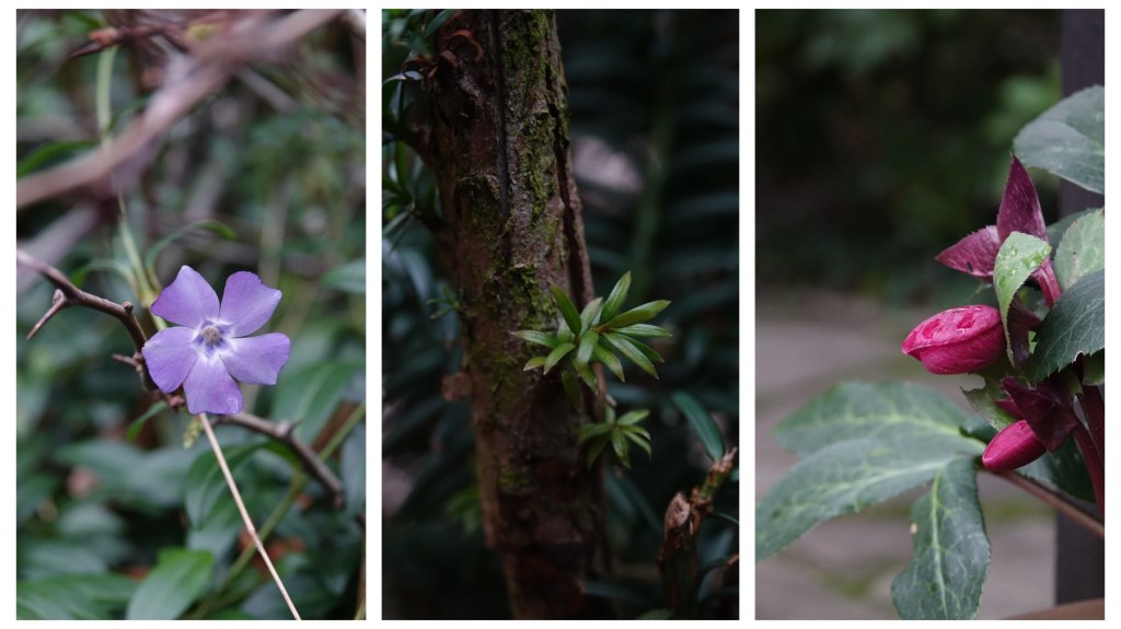 Sommige hebben hun beetje energie kunnen behouden en blijven sterk heel de winter door zoals deze roos. Andere doen hun uiterste best om aan hun periode van bloei te beginnen zoals deze Helleborus bloem. Zelf de maagdenpalm bloempjes zijn super vroeg dit jaar. Ook zij laten zich niet afschrikken door het trieste winterweer. Zo leuk om te ontdekken hoe veel er al volop bezig is in de tuin.
